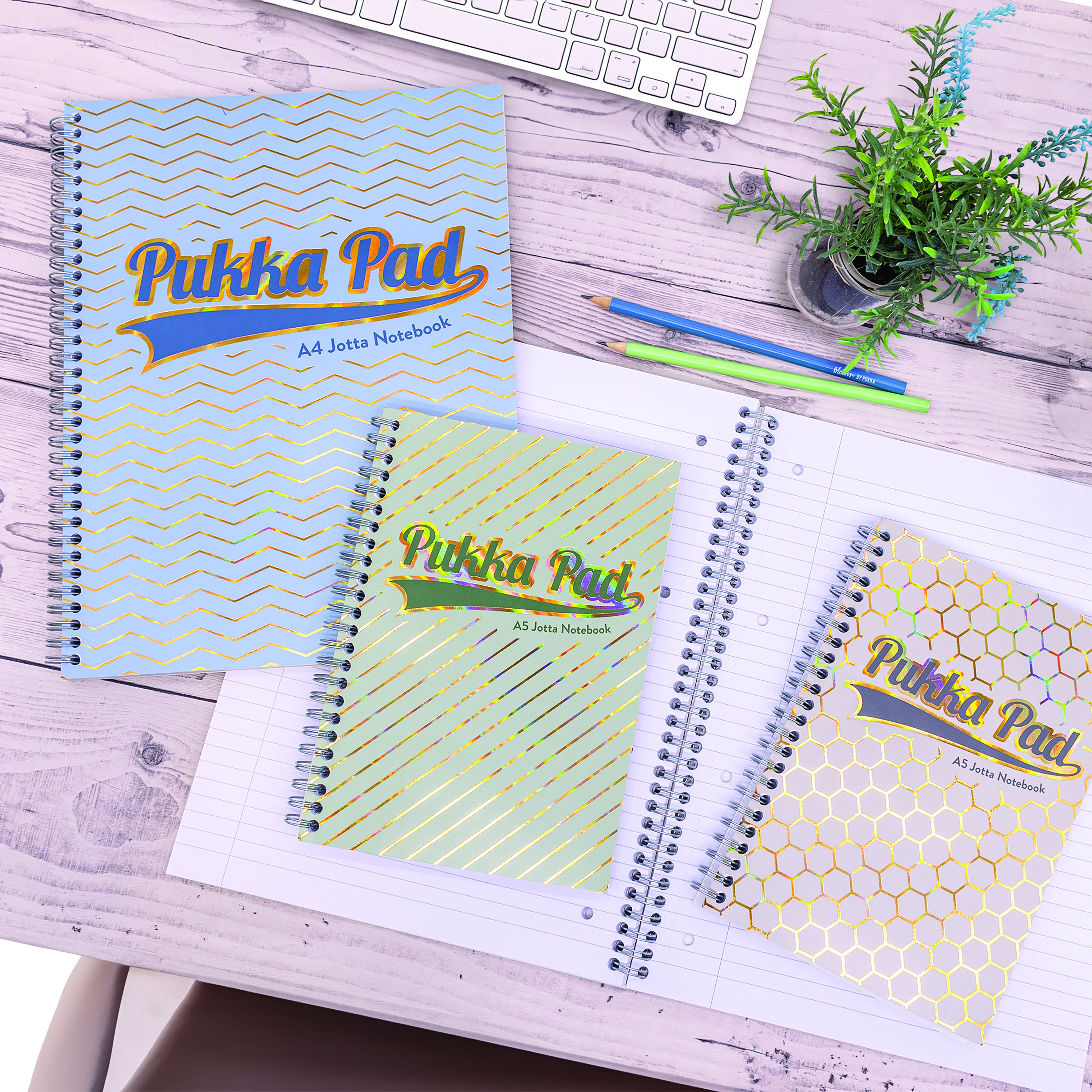 The elegant range of hot foil stationery, Haze, combines style and functionality. These A4+ Haze Jotta notebooks are perfect for all types of note-taking, whether it is jotting down ideas, taking meeting notes or studying for exams. Featuring 200 pages of 8mm lined, 80gsm paper, ensuring a smooth, high-quality writing experience. Organise notes easily with the perforated pages that effortlessly tear out to a true A4 size, ideal for placing into standard files. Add a touch of elegance to stationery sets with these Haze Jottas with beautiful hot-foil details that glisten in the light, perfect for both professional and personal use. Supplied in a pack of 3.
